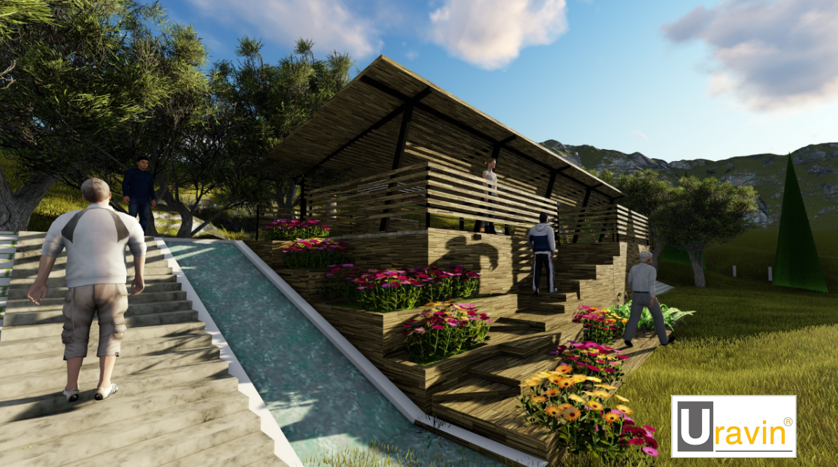 Vision của chúng tôi không tập trung quá vào sự đầu tư của những vật liệu công nghệ, chúng tôi sử dụng thủ tháp đơn giản là sắt thép kết hợp với vật liệu truyền thống sẵn có, hoặc là sự tái chế những vật liệu bỏ đi như gổ palet .v.v. Vài tảng đá địa phương kết hợp cũng là mối hài hòa cho thép, gỗ , đá.